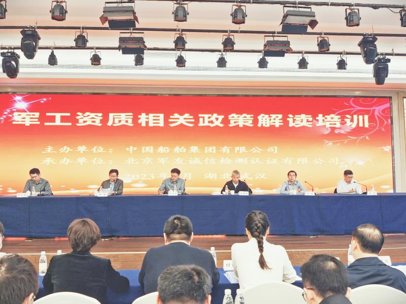 為加強(qiáng)對(duì)科研生產(chǎn)許可備案管理相關(guān)政策的理解和掌握,解讀軍品含稅采購(gòu)相關(guān)政策,了解新時(shí)代質(zhì)量管理體系成熟度評(píng)價(jià)產(chǎn)生背景及評(píng)價(jià)準(zhǔn)則,推動(dòng)中國(guó)船舶集團(tuán)有限公司(以下簡(jiǎn)稱船舶集團(tuán))裝備科研、生產(chǎn)及配套單位管理水平和質(zhì)量管理能力共同提升。2023年3月6日,由船舶集團(tuán)主辦,船舶質(zhì)量與可靠性中心、北京軍友誠(chéng)信檢測(cè)認(rèn)證有限公司(以下簡(jiǎn)稱軍友誠(chéng)信)承辦的“船舶集團(tuán)2023年度軍工資質(zhì)相關(guān)政策解讀培訓(xùn)”在武漢開幕。