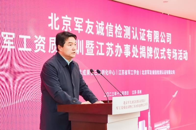 為貫徹落實(shí)習(xí)近平總書(shū)記關(guān)于深入推進(jìn)長(zhǎng)三角一體化發(fā)展的指示要求,更好的服務(wù)支撐國(guó)家創(chuàng)新驅(qū)動(dòng)發(fā)展戰(zhàn)略和民參軍、軍轉(zhuǎn)民深度發(fā)展戰(zhàn)略,助力長(zhǎng)三角區(qū)域的科技創(chuàng)新和產(chǎn)業(yè)創(chuàng)新深度融合發(fā)展,由先進(jìn)技術(shù)成果長(zhǎng)三角轉(zhuǎn)化中心(以下簡(jiǎn)稱轉(zhuǎn)化中心)、江蘇省軍工學(xué)會(huì)、北京軍友誠(chéng)信檢測(cè)認(rèn)證有限公司(以下簡(jiǎn)稱軍友誠(chéng)信)聯(lián)合主辦的“先進(jìn)成果長(zhǎng)三角轉(zhuǎn)化中心孵化基地專場(chǎng)活動(dòng)”在蘇州舉行。國(guó)家國(guó)防科工局經(jīng)濟(jì)技術(shù)發(fā)展中心(以下簡(jiǎn)稱發(fā)展中心)副主任王海鵬、轉(zhuǎn)化中心主任張杰、江蘇省工業(yè)和信息化廳二級(jí)巡視員譚曉平、江蘇省軍工學(xué)會(huì)副理事長(zhǎng)習(xí)仁國(guó)、蘇州市相城區(qū)副區(qū)長(zhǎng)邢鵬、軍友誠(chéng)信總經(jīng)理周濤出席開(kāi)幕式,以及來(lái)自軍地有關(guān)部門(mén)和單位、活動(dòng)主辦方、科研機(jī)構(gòu)、知名企業(yè)的領(lǐng)導(dǎo)和代表共計(jì)130余人參加會(huì)議。軍友誠(chéng)信副總經(jīng)理謝志磊主持開(kāi)幕式。