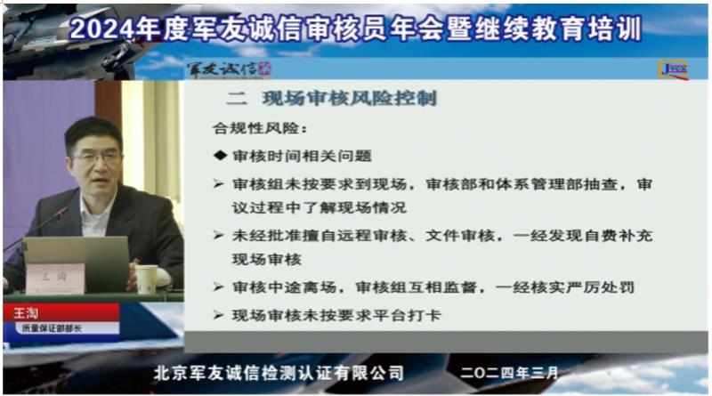 2024年3月30日至31日,北京軍友誠信檢測認(rèn)證有限公司(以下簡稱軍友誠信)召開了2024年度審核員大會。本次會議采用“主會場+分會場”、線上線下相結(jié)合的模式進(jìn)行,主會場設(shè)在北京,依托分公司、辦事處資源分別在沈陽、西安、蘇州、廣州設(shè)4個分會場,共600余人參加會議,會議由公司趙顯立書記主持。