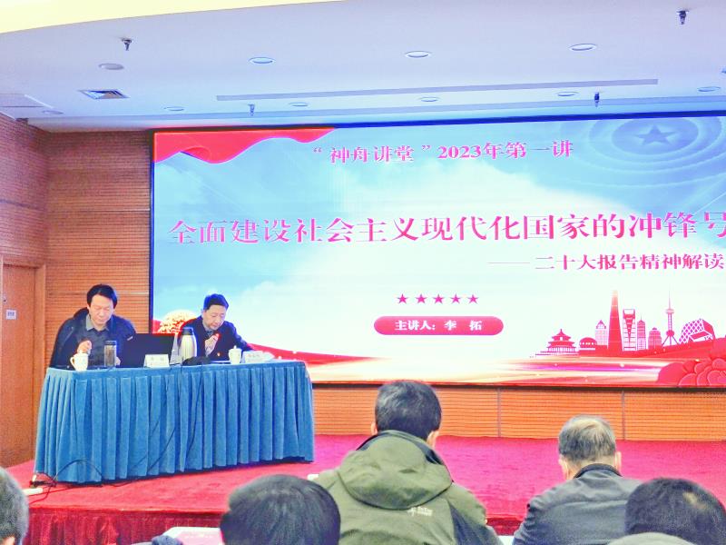 為全面深入學(xué)習(xí)貫徹黨的二十大精神,學(xué)懂弄通做實(shí)黨的二十大精神內(nèi)涵要義,根據(jù)《中共國(guó)防科工局經(jīng)濟(jì)技術(shù)發(fā)展中心委員會(huì)學(xué)習(xí)宣傳貫徹黨的二十大精神實(shí)施工作方案》要求,2023年1月3日,國(guó)防科工局經(jīng)濟(jì)技術(shù)發(fā)展中心(以下簡(jiǎn)稱經(jīng)發(fā)中心)黨委舉辦“神舟講堂”2023年第一講。邀請(qǐng)中央黨校(國(guó)家行政學(xué)院)科學(xué)社會(huì)主義教研部中國(guó)特色社會(huì)主義教研室主任、博士生導(dǎo)師李拓教授,以《全面建設(shè)社會(huì)主義現(xiàn)代化國(guó)家的沖鋒號(hào)》為題,為經(jīng)發(fā)中心全體黨員干部、發(fā)展對(duì)象、入黨積極分子進(jìn)行黨的二十大精神解讀。北京軍友誠(chéng)信檢測(cè)認(rèn)證有限公司黨員干部、入黨積極分子參加學(xué)習(xí)。