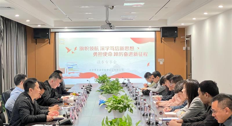 為深入學(xué)習(xí)貫徹習(xí)近平新時(shí)代中國特色社會主義思想,全面落實(shí)黨的二十大精神,引導(dǎo)公司團(tuán)員青年在實(shí)現(xiàn)中國夢強(qiáng)軍夢的偉大進(jìn)程中不斷開拓創(chuàng)新、奮發(fā)有為。根據(jù)國防科工局經(jīng)濟(jì)發(fā)展中心(以下簡稱發(fā)展中心)團(tuán)總支“學(xué)思踐悟新思想 強(qiáng)軍報(bào)國新時(shí)代”青年理論學(xué)習(xí)小組2023年學(xué)習(xí)計(jì)劃,北京軍友誠信檢測認(rèn)證有限公司(以下簡稱軍友誠信)青年理論小組開展“旗幟領(lǐng)航 深學(xué)篤信新思想,勇?lián)姑? 踔厲奮進(jìn)新征程”讀書分享會。公司總經(jīng)理周濤出席并講話。